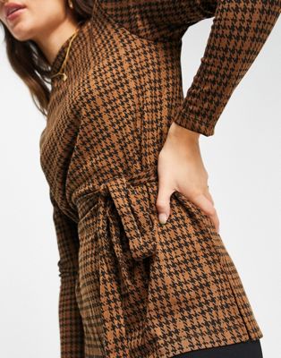 ブランド名Vila性別Women(レディース)商品名Vila long sleeved top with high neck and tie waist in brown checkカラーBROWN CHECK